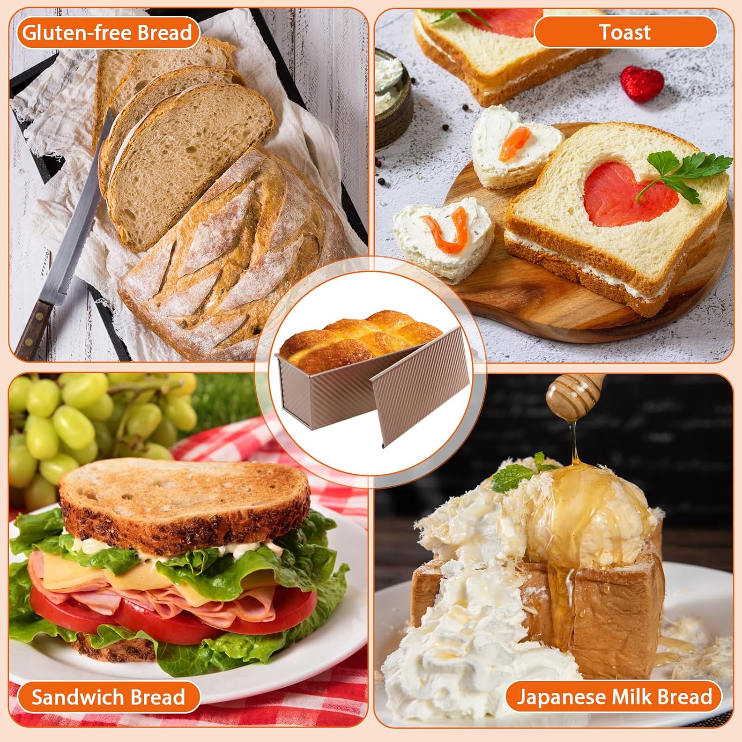 - CHEF-APPROVED DEMENSION&VERSATILITY – The 13"x4" baking surface accommodates 2.2lb dough batches effortlessly. As a premium bread loaf pan, it offers dual-mode functionality: Use the airtight lid for perfectly square sandwich bread loaf pan creations or remove it for artisan-style baking. Perfect for everything from rustic homemade bread to professional patisserie.