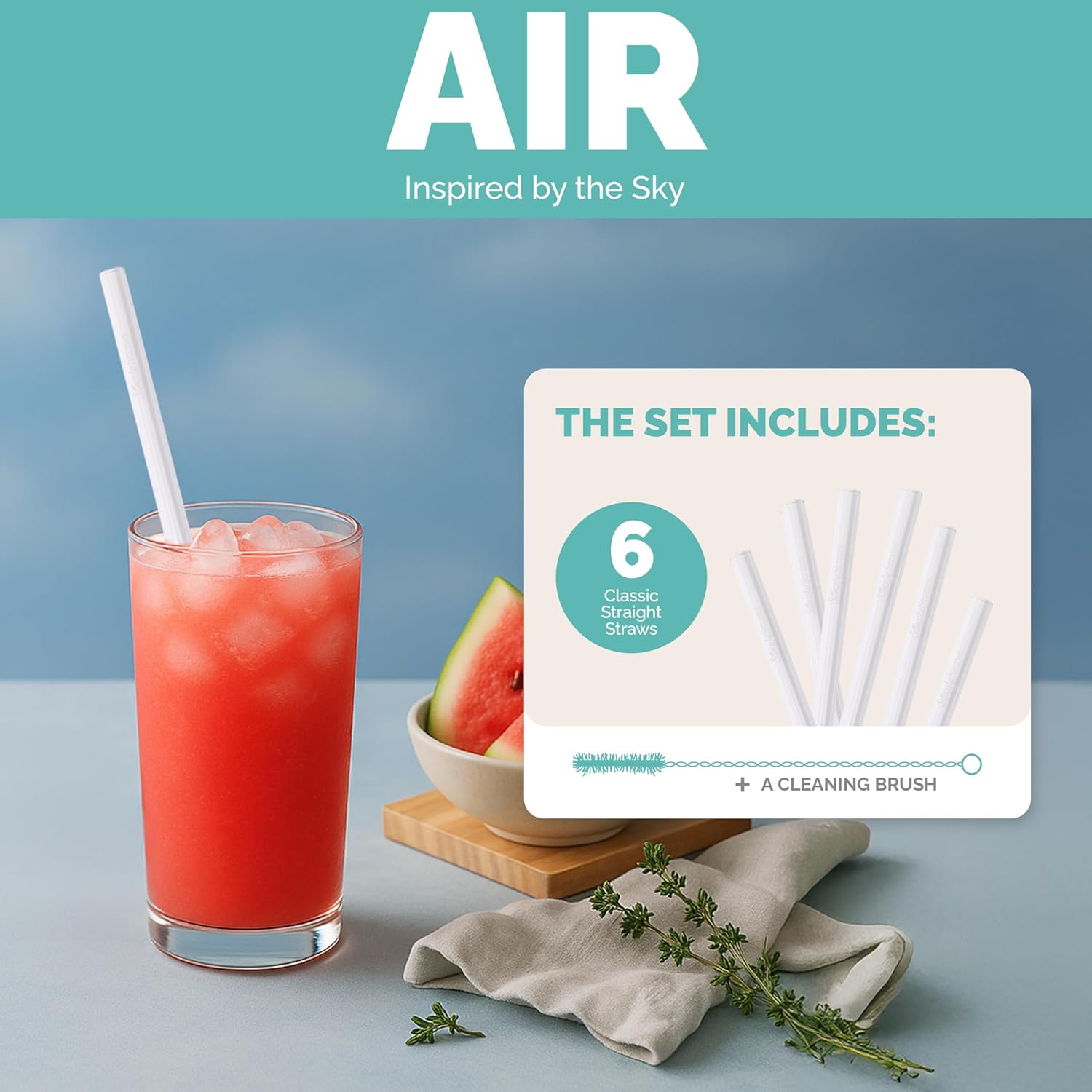Simply Straws 10 Inch Glass Straws Straight (6-Pack) – Reusable Glass Straws for 24 Oz Mason Jars & Tumblers, with Cleaning Brush – Durable, Dishwasher Safe, Hot & Cold Use, BPA-Free (Air)