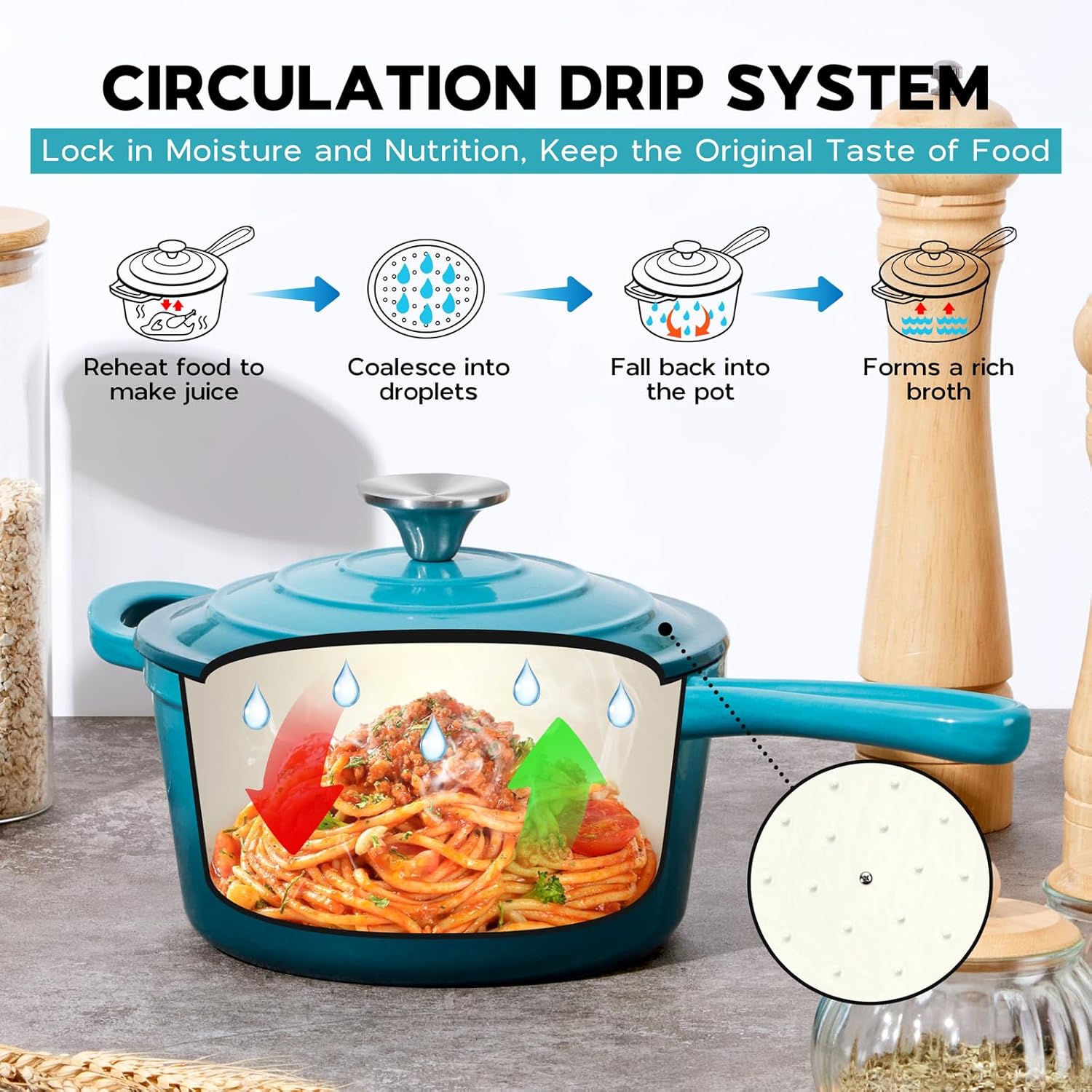 Enameled Cast Iron Sauce Pan, Onader 2QT Saucepan with Lid, Small Cast Iron Pot for Cooking, Enamel Dutch Oven Nonstick & Heavy Duty – Dark Cyan