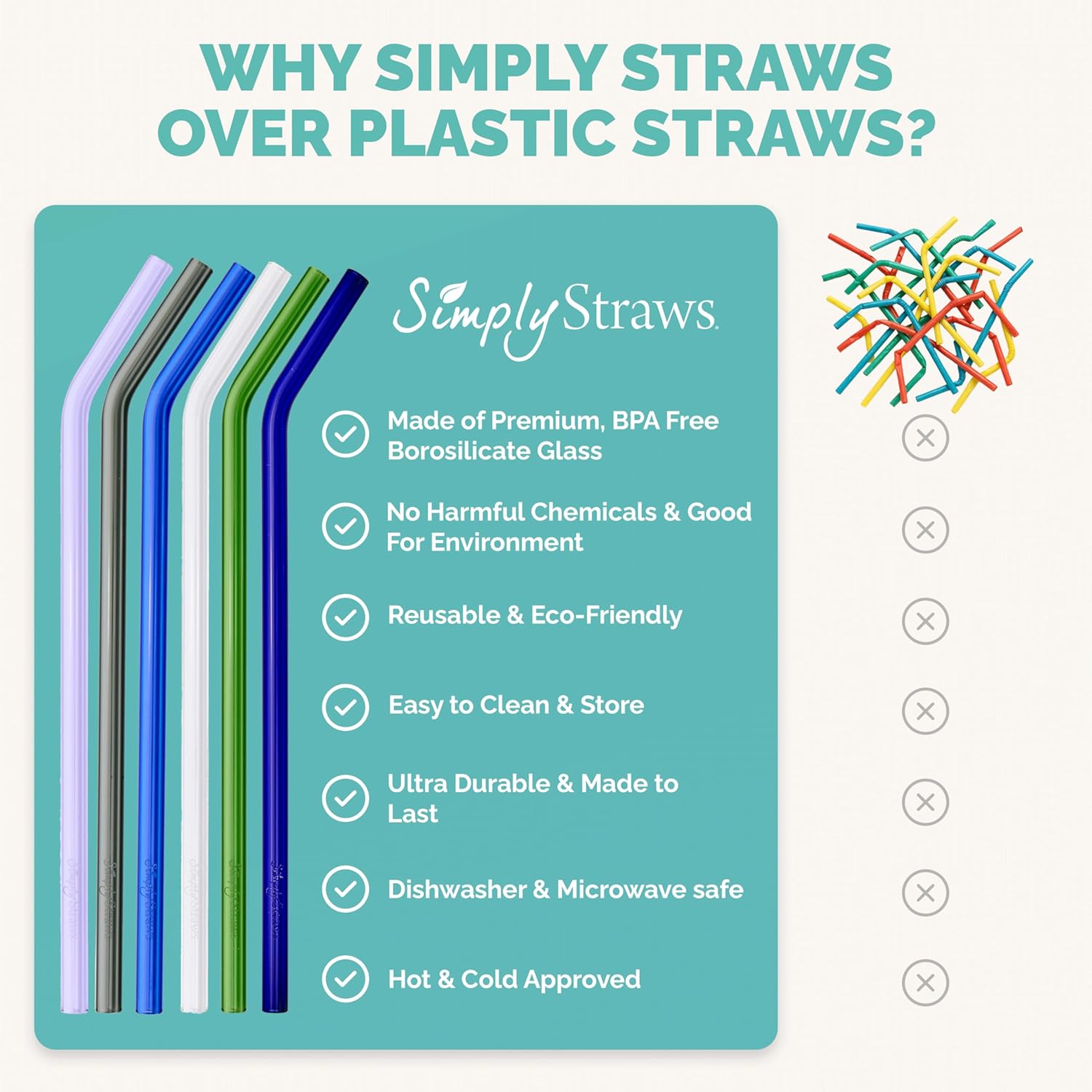 Simply Straws 8 Inch Glass Straws Bent (6-Pack) – Reusable Glass Straws for Pints & Juice Drinkware, with Cleaning Brush – Dishwasher Safe, Hot & Cold Use, BPA-Free (Seaglass)