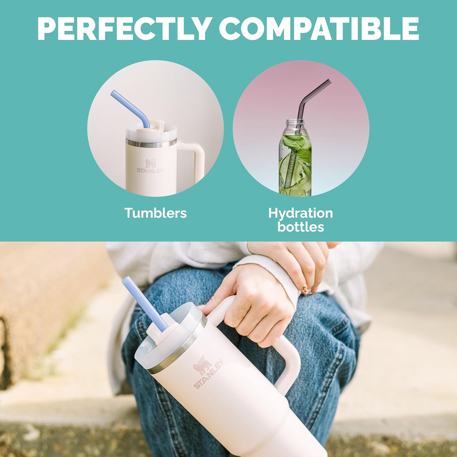 - Fit 30–40 Oz Tumblers: These 12 inch glass straws are made to fit Stanley, Yeti, Owala, and other 30–40 oz tumblers and hydration bottles with a snug 10mm outside diameter.