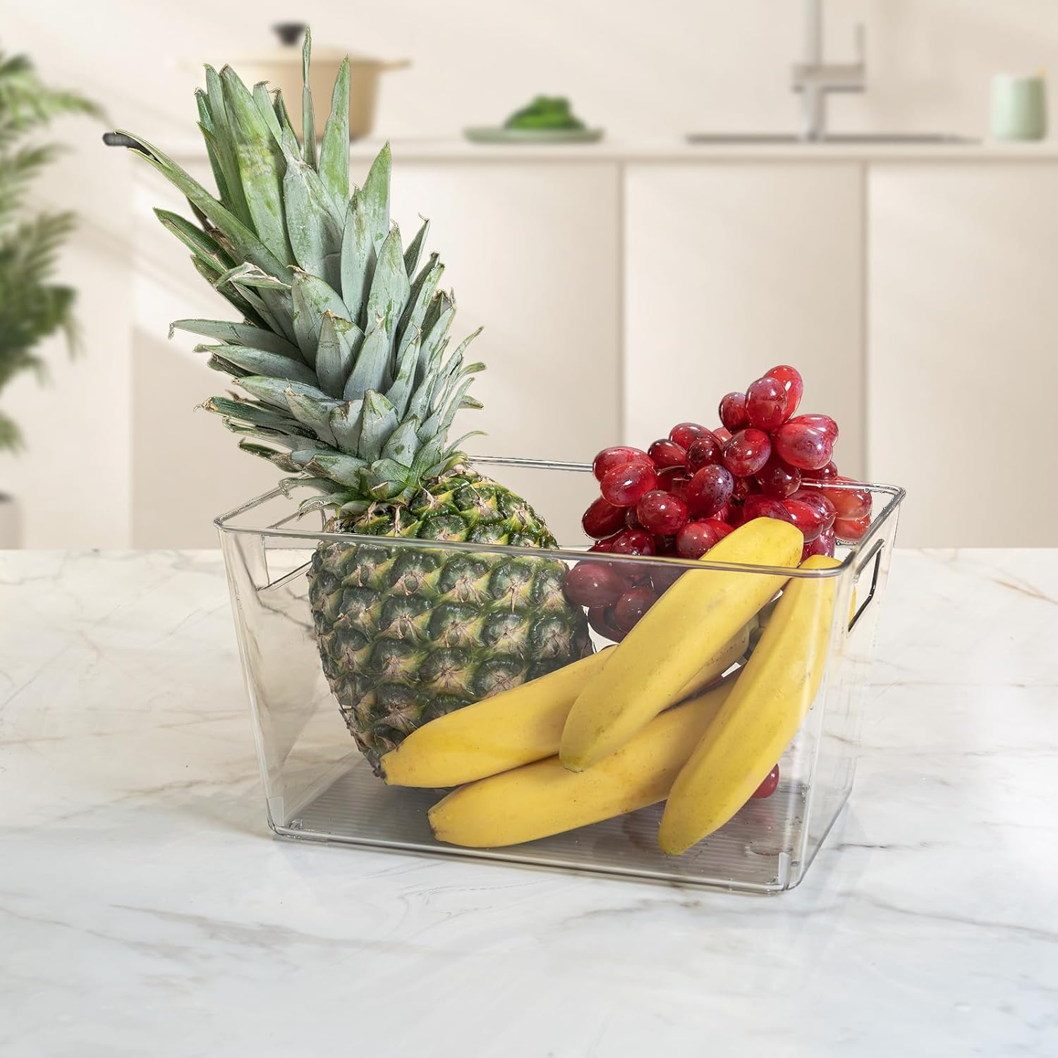 8 Pack Clear Plastic Storage Bins, 11" Large Pantry Organizer Bins with Handles, Plastic Containers for Refrigerator,BPA-Free Perfect for Kitchen,Fridge,Cabinet,Pantry,Bathroom,Closet Organization