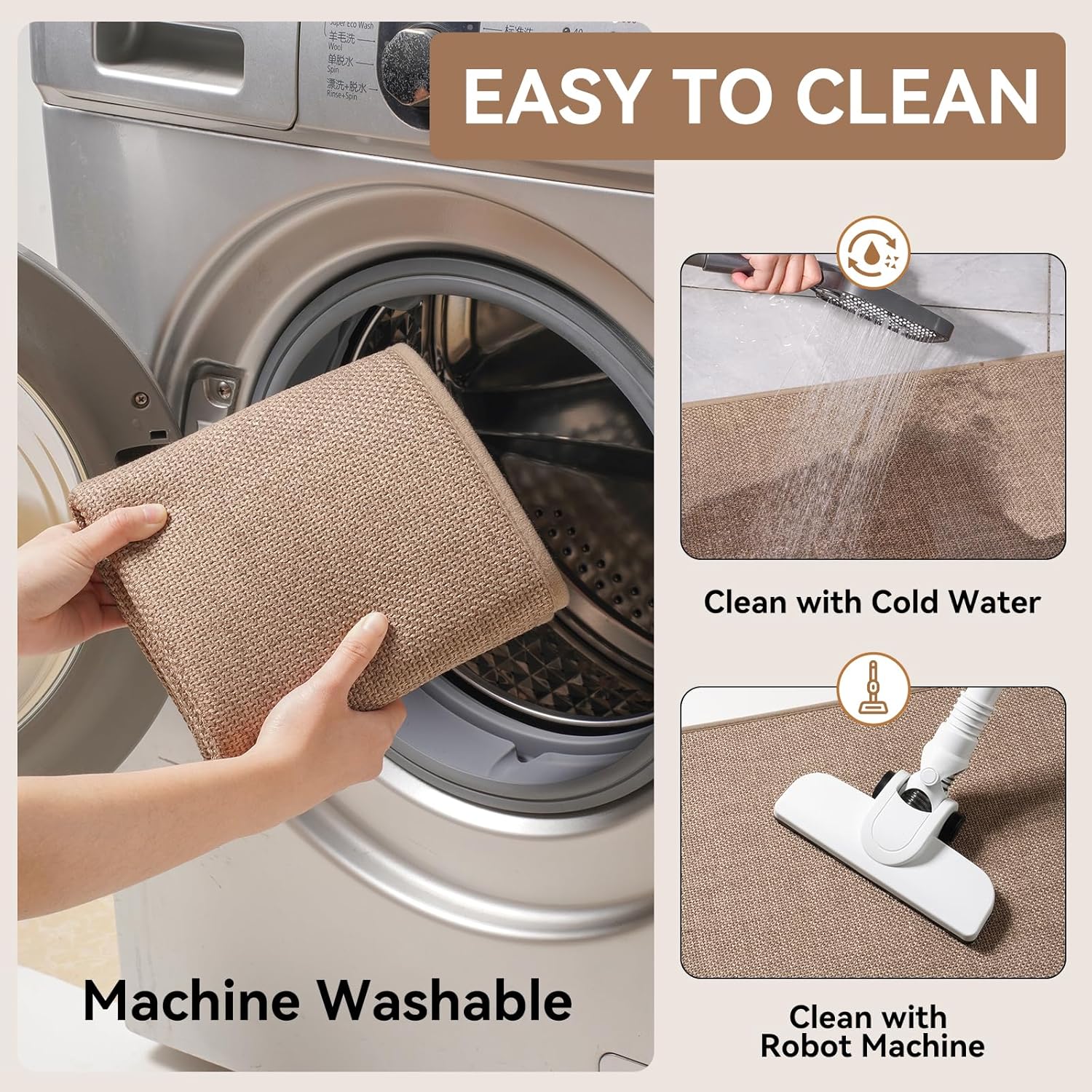 • Ultra Durable & Easy To Clean - Washable kitchen rugs have strong, well-made edges to ensure that they retain their shape over time and will not disintegrate and compress. Kitchen rugs are easy to clean and maintain, you can wash them with a vacuum cleaner or washing machine. The color will not fade or crack after washing. PLEASE NOTE: Machine wash cold with a neutral detergent (no chlorine or bleach) and tumble dry low on low.