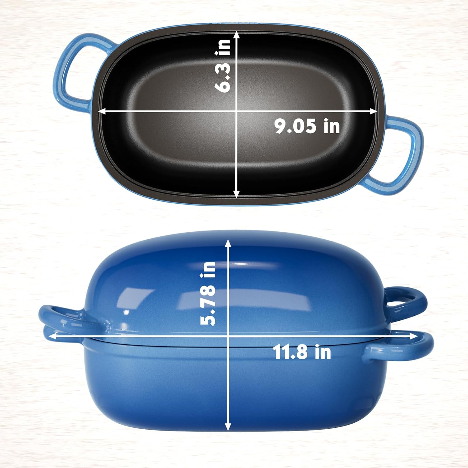 - [Safer Bread Baking] The handles of the cast iron bread oven are large enough to be operated with oven gloves, without worrying about burning your hands when the bread is degassing, effectively avoiding cumbersome or potentially dangerous operations during baking. The oval design keeps the bread moist inside, which helps to form the internal structure of the bread and perfectly bake the surface