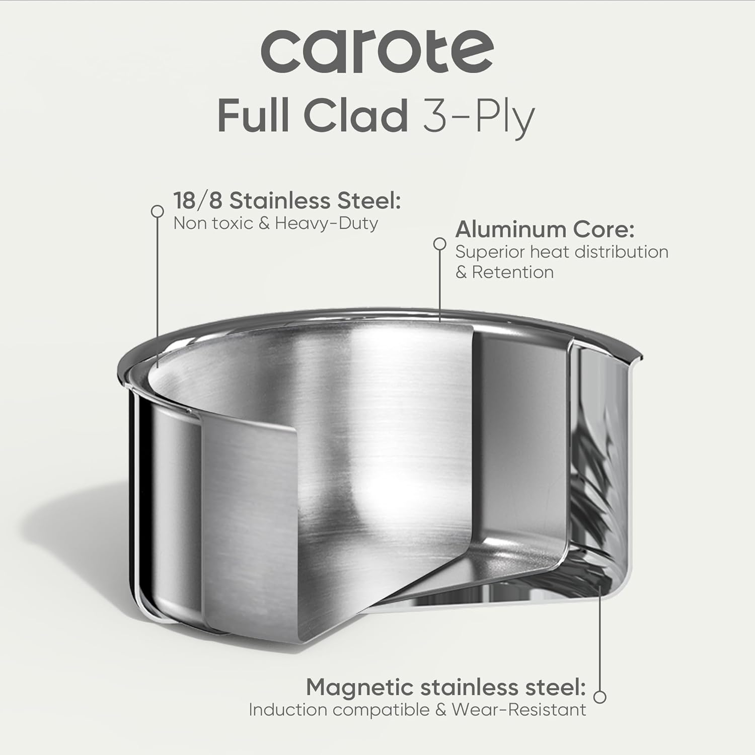 - 5. Premium Food-Grade Safety: PFAS/PFOA/PFOS-Free 18/8 stainless steel, non-toxic material certified for daily cooking. Full tri-ply clad construction prevents warping and hot spots.