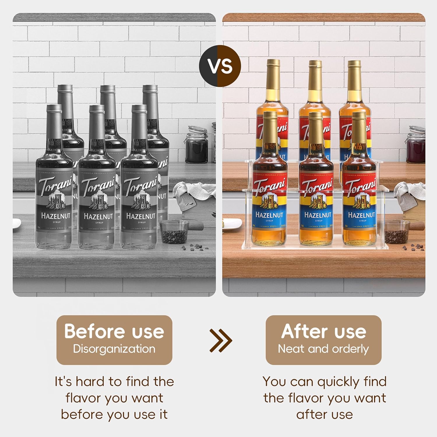 - Versatile Storage for Multiple Flavors:Perfectly sized to hold a variety of syrup bottles(e.g.,vanilla,caramel,hazelnut,salted caramel),keeping your"Formula Originale"collection neatly organized and easily accessible