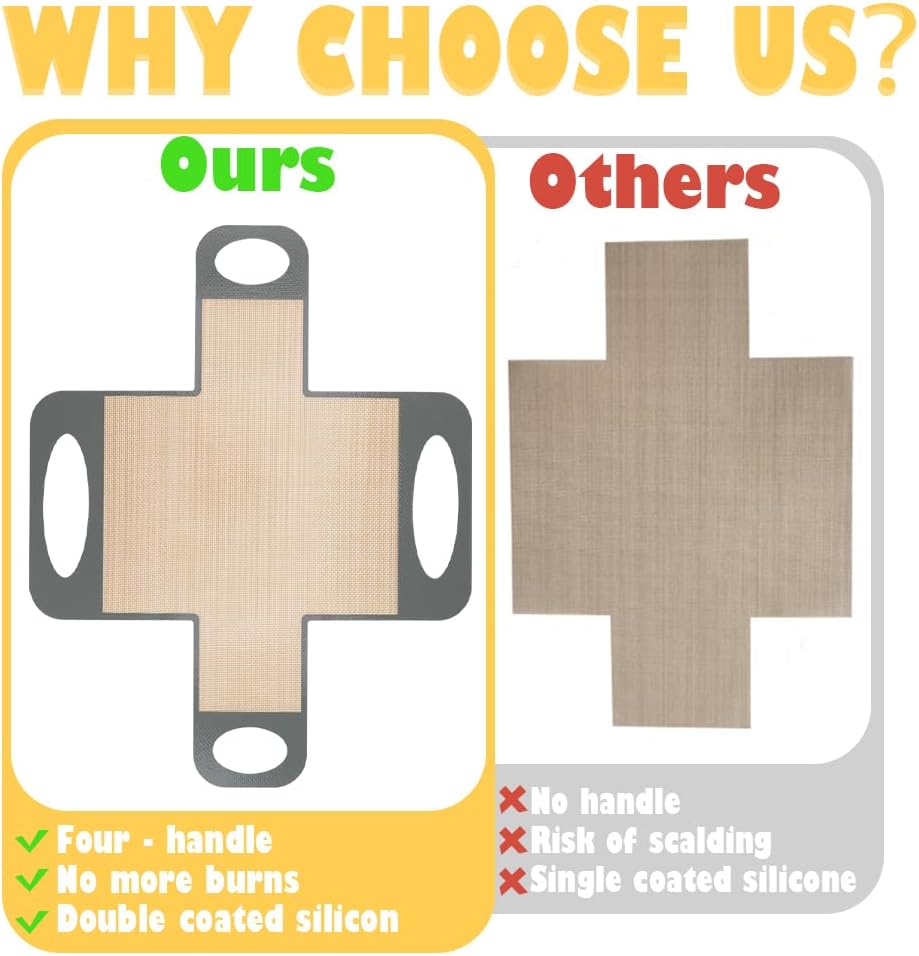 - FOUR SECURE HANDLES: Unlike regular liners, these silicone bread liners feature four sturdy handles for a secure grip, preventing spills and tipping when lifting heavy dough, while also helping to prevent burns after baking