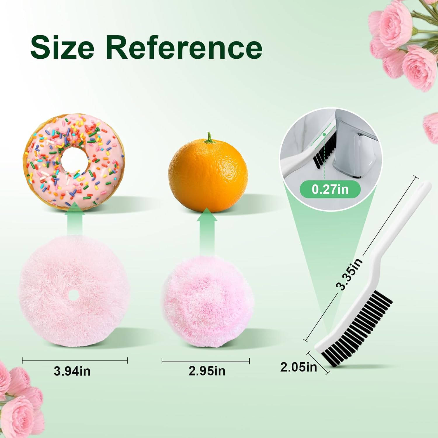 - 【Ergonomic & Joyful Design】The multi-use pink brushes are crafted into round donut and ball shapes for an easy grip. The 6.5" donut fits your hand perfectly; the 4" ball nestles in your palm to clean hard-to-reach corners. The cheerful color adds joy to chores!