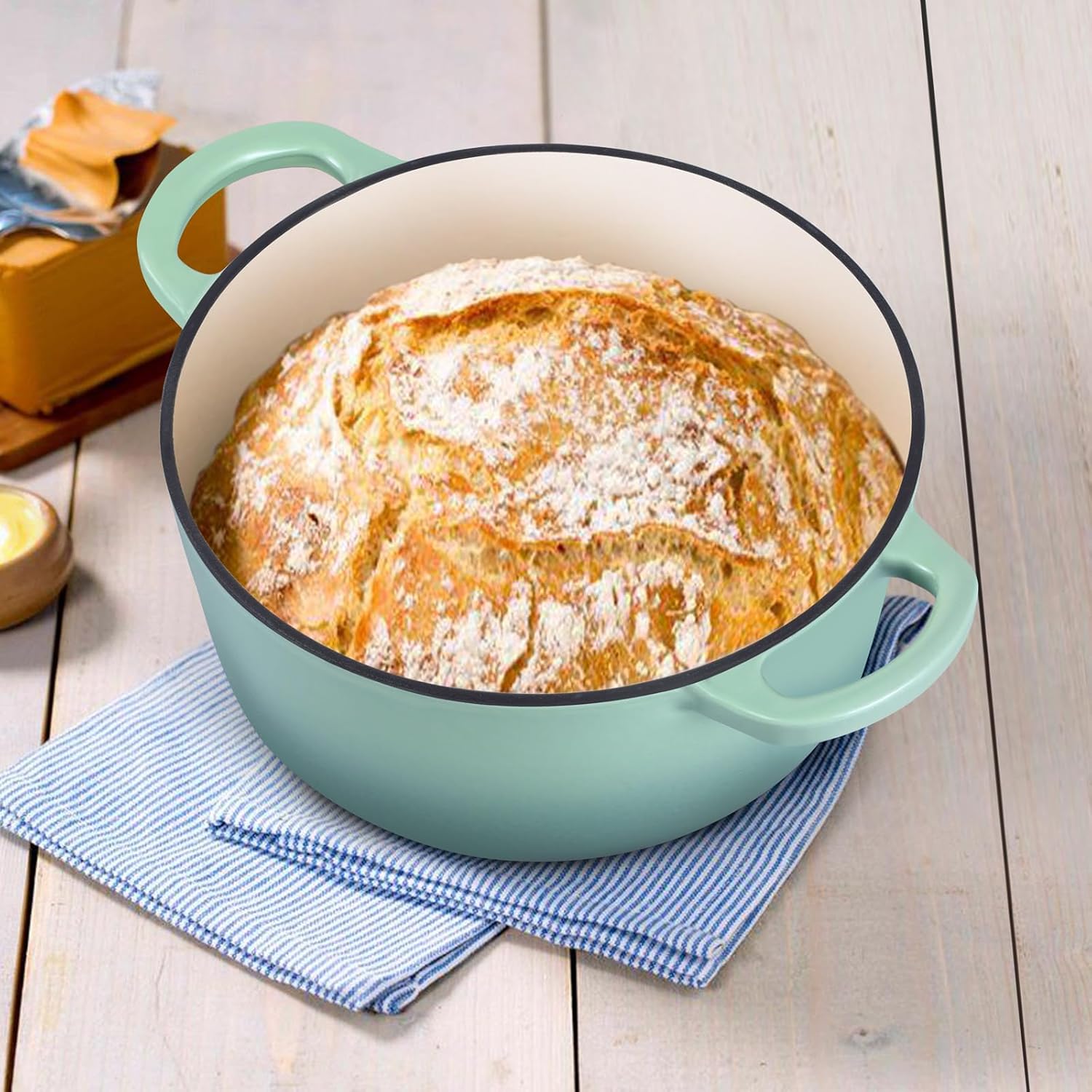 E-far 3 Qt Enameled Cast Iron Dutch Oven with Lid, Small Round Nonstick Dutch Oven Pot for Bread Baking Braising Stews Roasting Cooking, Heavy Duty, Induction & Oven Safe - Sage Green
