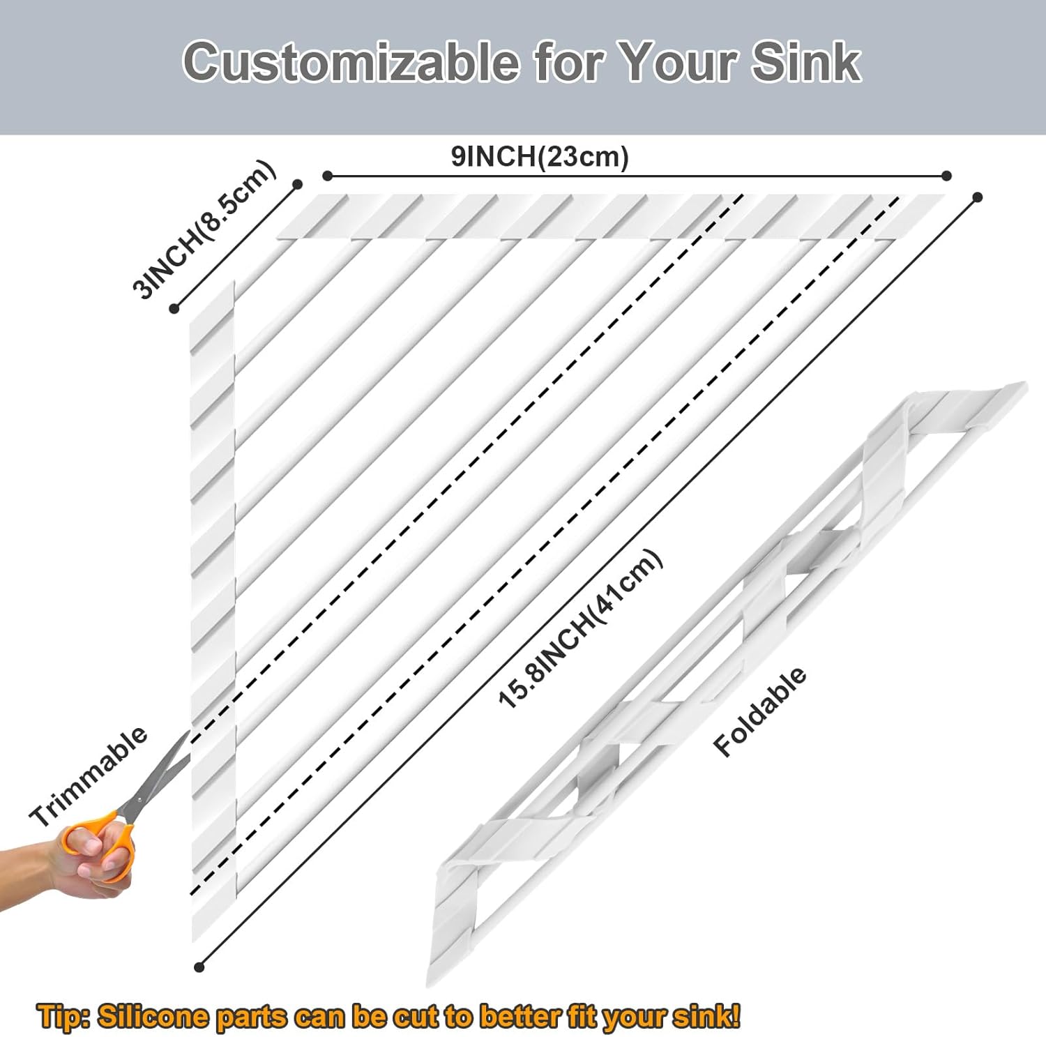 - ✔️【Foldable Design, Flexible Storage and Space Saving】Easy to roll up and fold, compact size in seconds, easy to store in drawers or corners; Adjustable unfolding form, adapt to different countertop needs. Silicone surface can be cleaned with a single flush, no need to disassemble, making daily kitchen cleaning more efficient.