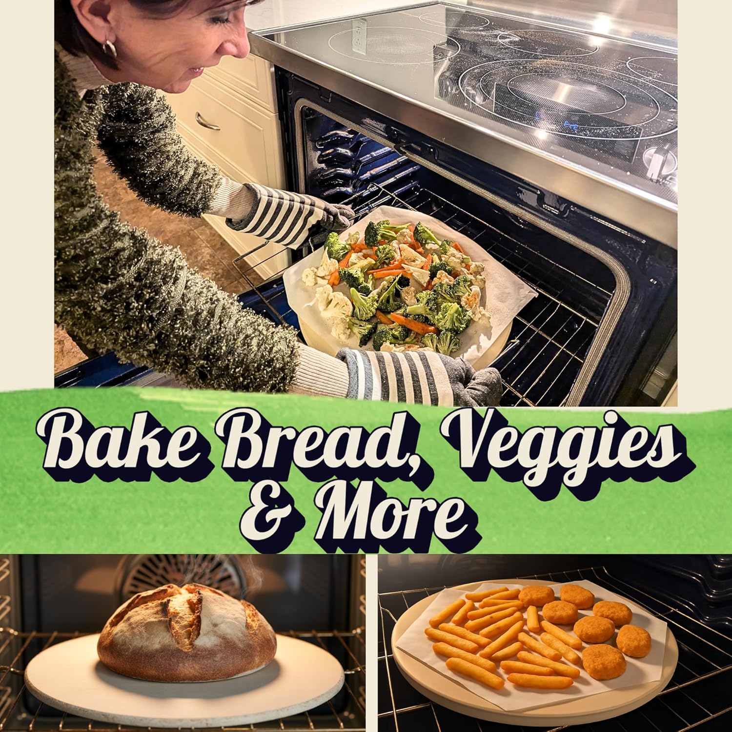 - EASY TO USE & VERSATILE: Beyond just pizza, our outdoor pizza oven stone offers endless possibilities. Use it as nonstick sourdough bread baking stone, biscuits, cookies, veggies, and more. Can use as a stone cookie sheet, bread stone, grill stone and more.