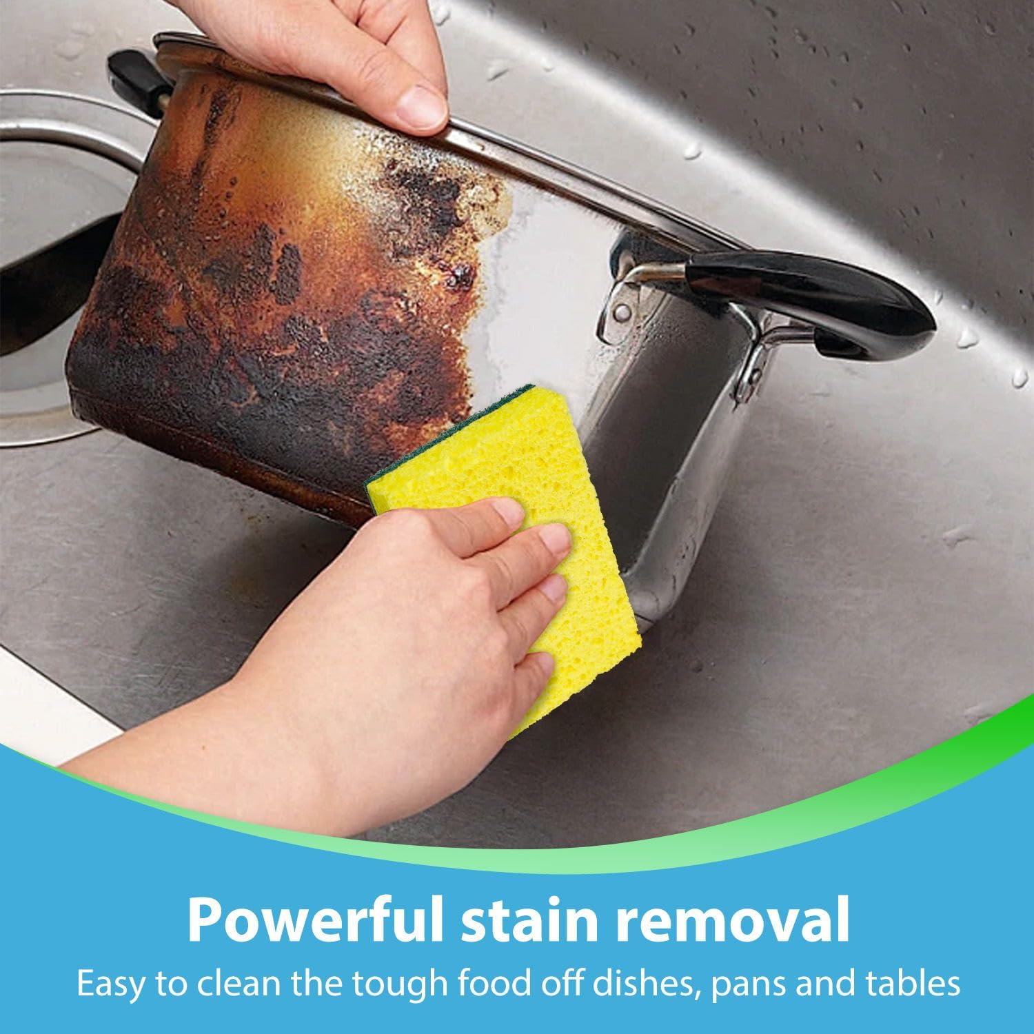 - DUAL-SIDED DESIGN: Heavy-duty scrubbing sponge features yellow side for gentle cleaning and green side for tough stains and sticky residue