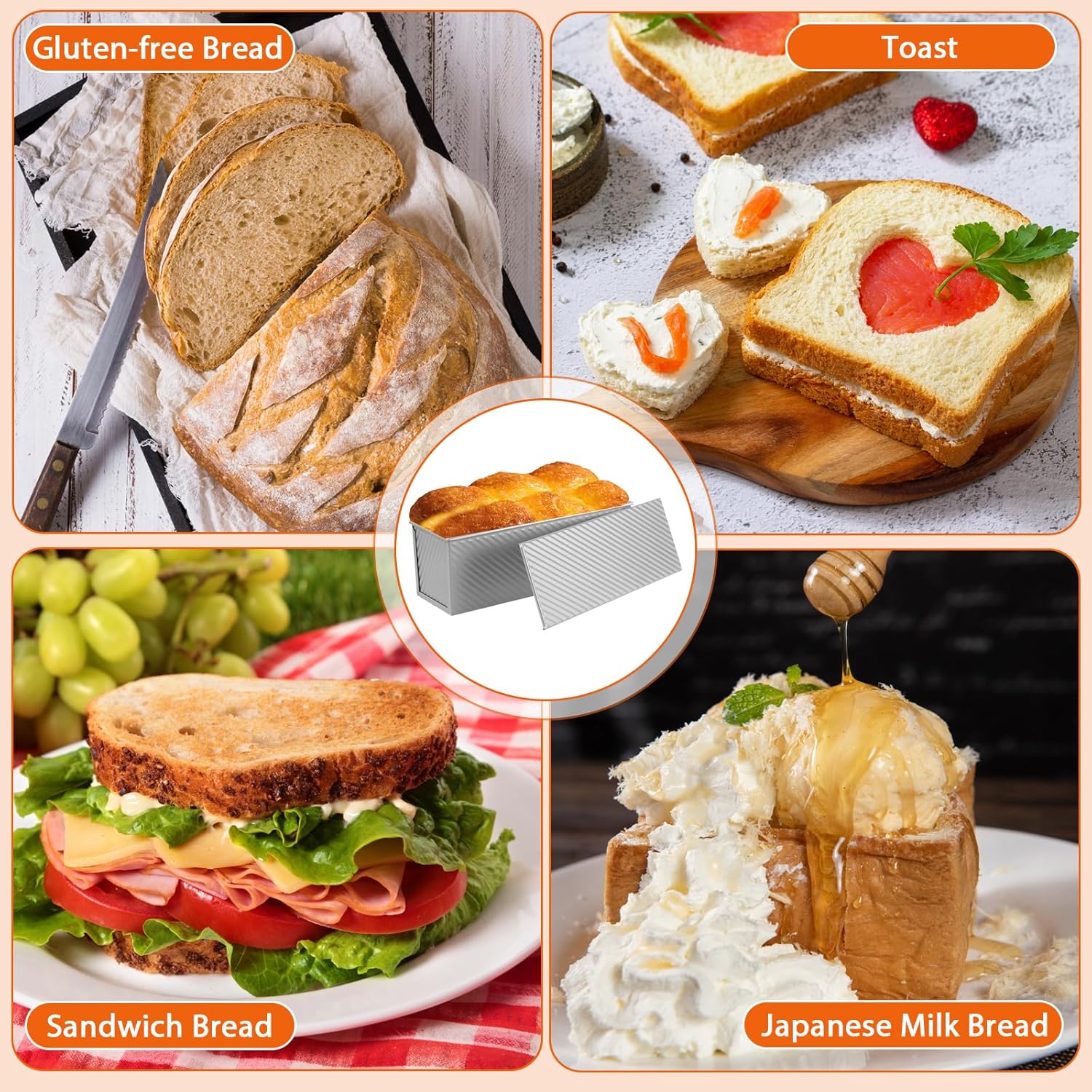 - CHEF-APPROVED DEMENSION&VERSATILITY – The 13"x4" baking surface accommodates 2.2lb dough batches effortlessly. As a premium bread loaf pan, it offers dual-mode functionality: Use the airtight lid for perfectly square sandwich bread loaf pan creations or remove it for artisan-style baking. Perfect for everything from rustic homemade bread to professional patisserie.