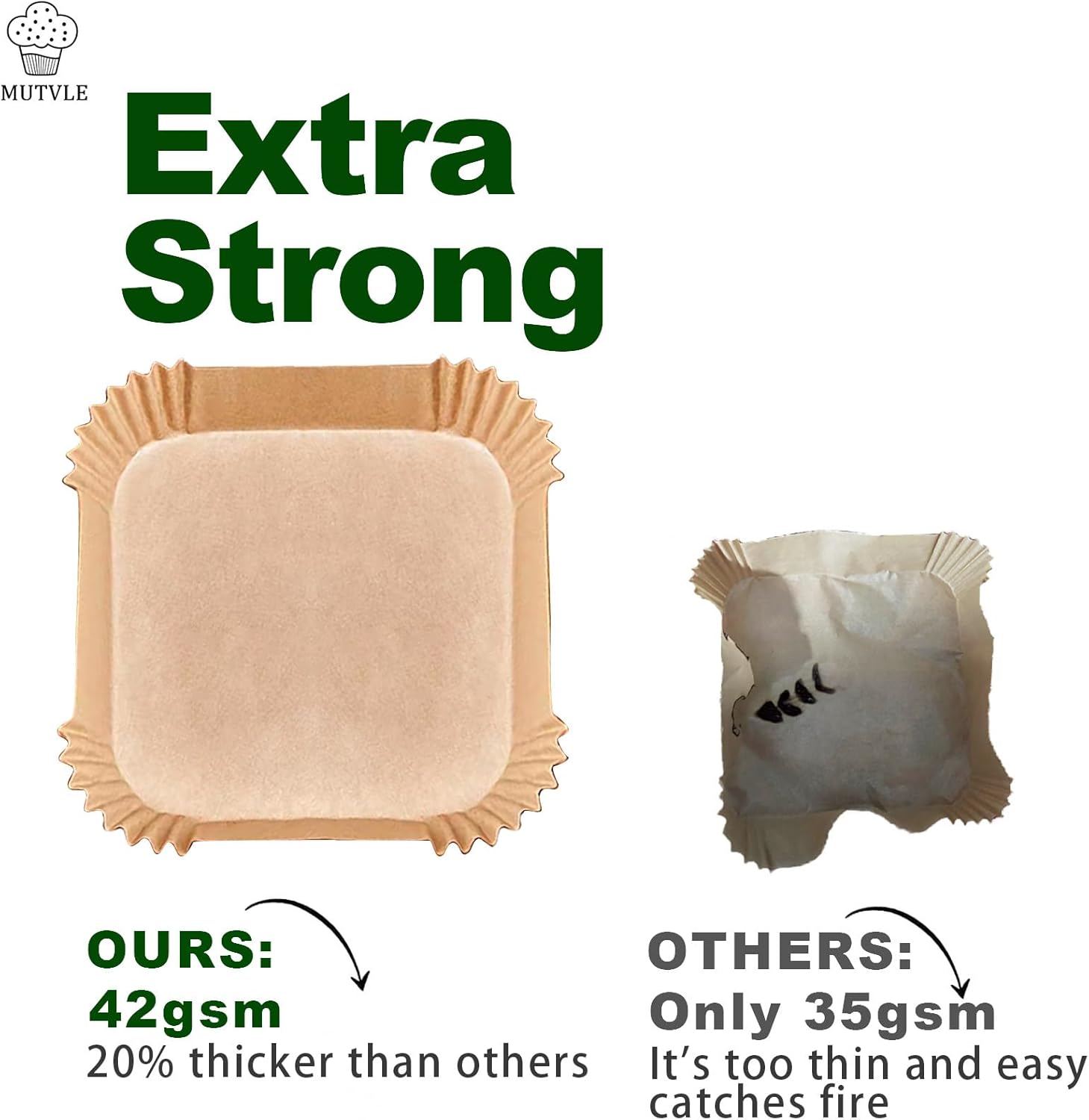 - 【Materials】2qt air fryer liner for COMFEE' Compact 2.1 Quart Air Fryer made out of unbleached,natural wood pulp, with a plant based oil treatment, no fluorescent agent, BPA-free, PFAs-free. 1.5 times thicker than ordinary parchment to be durable and sturdy, 12% thicker than ordinary parchment to be durable and sturdy, and won’t tear when lifting even after cooking. Heat resistant up to 450℉/230℃.