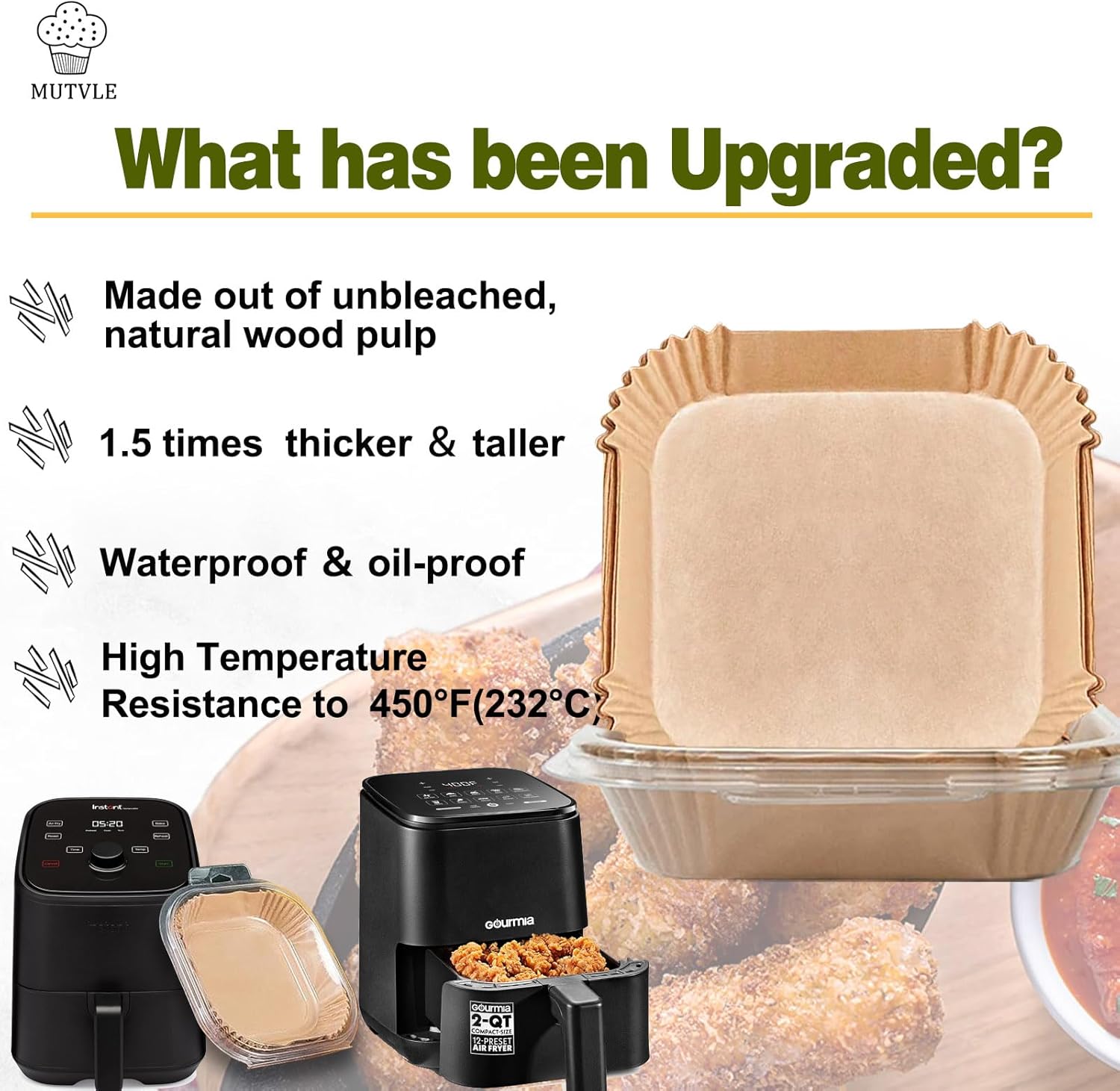 - 【Easy to Use】The 2 quart air fryer liners for Gourmia Compact 2‑Qt Digital Air Fryer are designed with a square bowl shape, which do not need to tear, fold, cut, nor bend, and you can directly put it in when you are ready to cook. Its heightened edge 4.5cm can protect the side of fryers and prevent food from sticking to them.