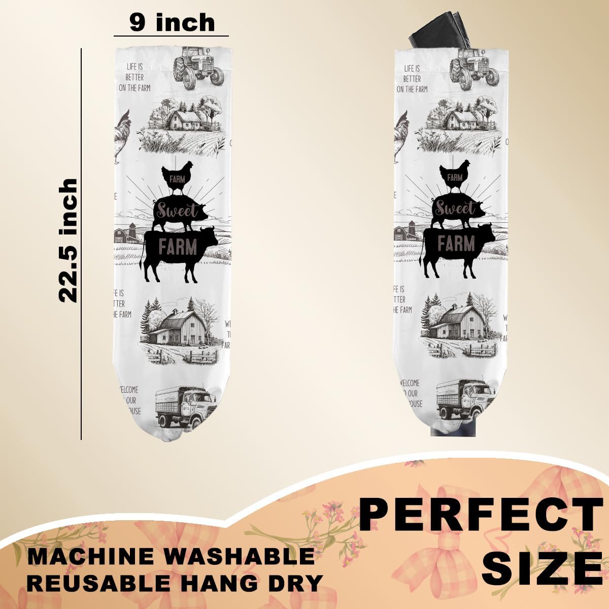 Rustic Sweet Farm Plastic Bag Holder for Kitchen Essentials, Wall Mount Grocery Bag Holder for Plastic Bags, Cow Pig Chicken Reusable Grocery Bags Storage Dispenser for Home Kitchen Farmhouse