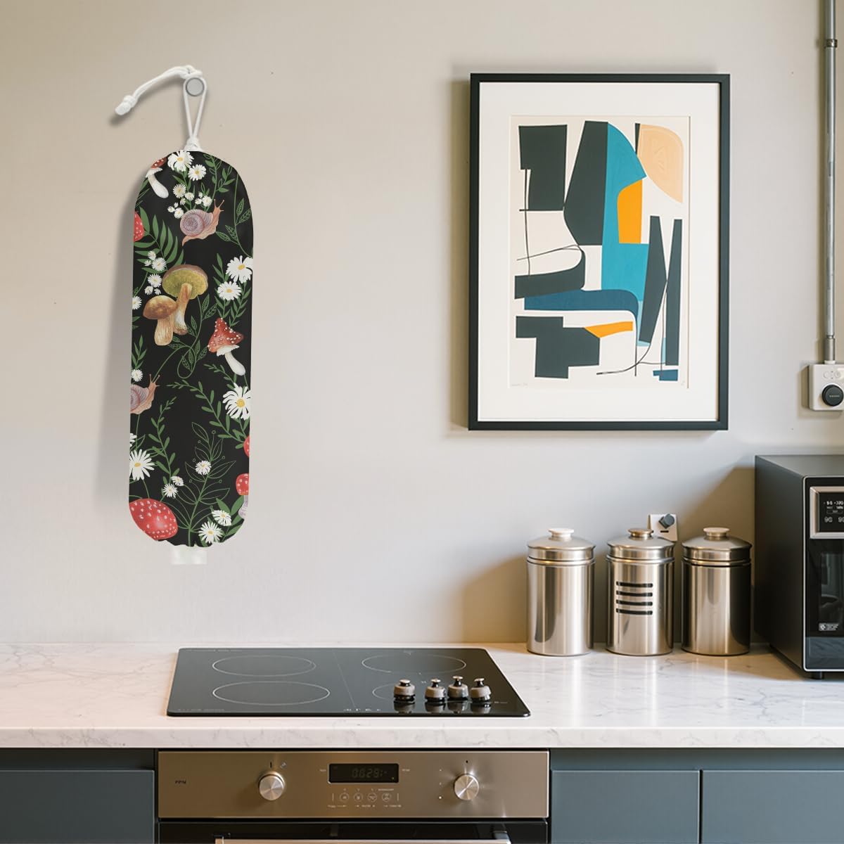 Vibrant Mushroom Plastic Bag Holder for Kitchen Essentials, Snail Floral Grocery Bag Holder for Plastic Bags, Washable Shopping Bags Storage Dispenser for Home Kitchen, Mushroom Gifts for Women