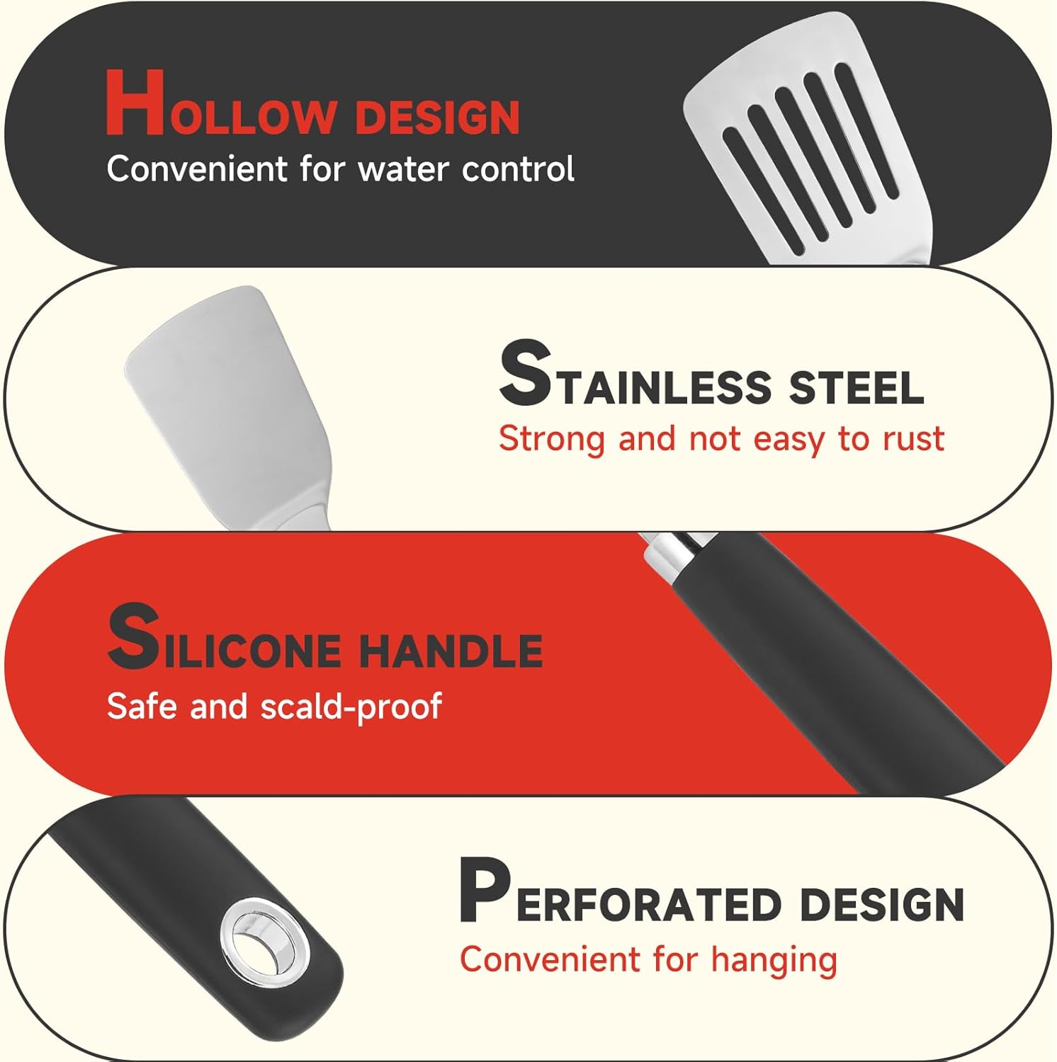- 【Carefully crafted】 Our metal spatulas for kitchen use are carefully crafted from high-quality 430 material. Let you enjoy the pleasure of cooking while using it, bringing you unexpected feelings.