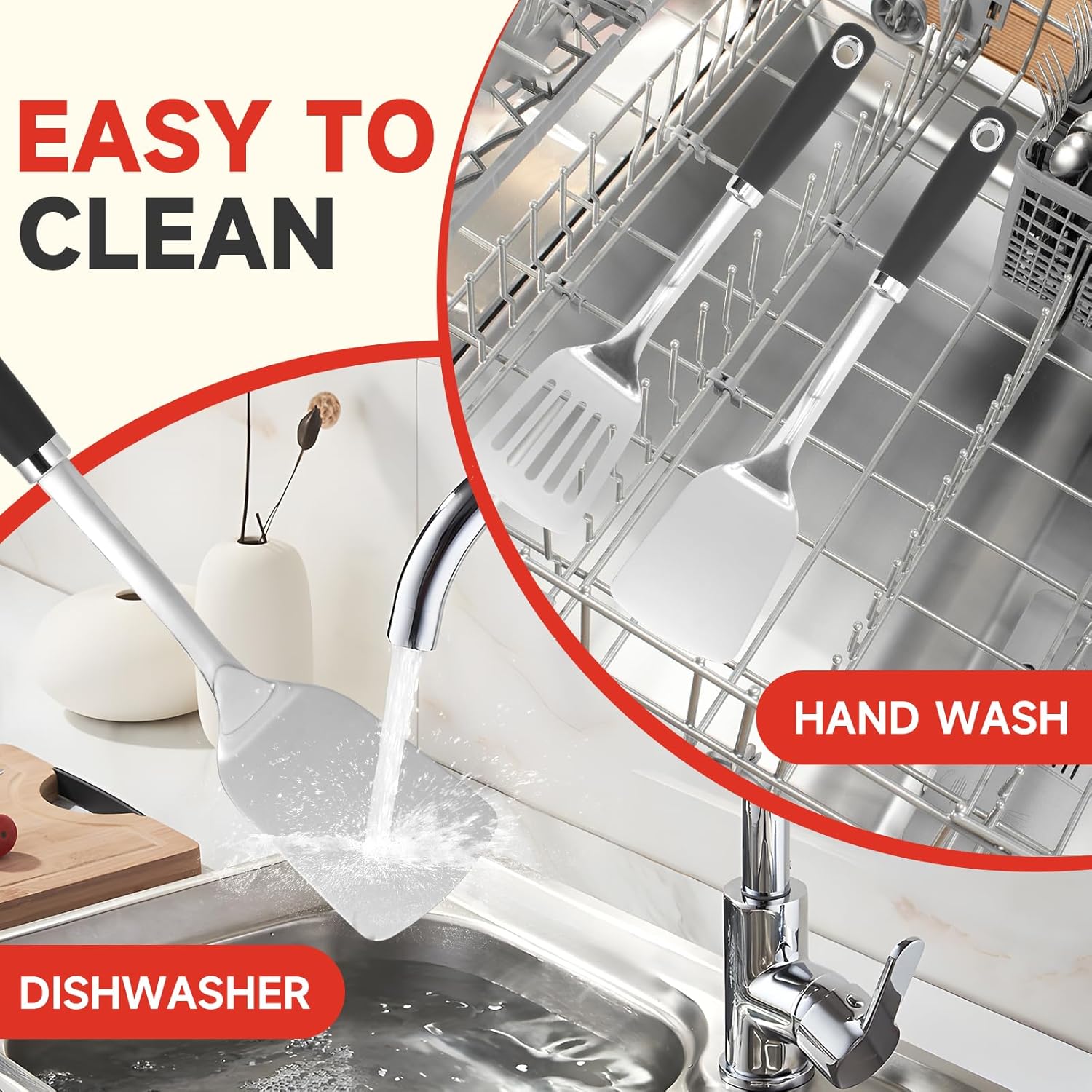 - 【Easy to Clean & Store 】 This spatula utensil set cleans up easily with dish soap water and it's dishwasher safe so we can save time on cleaning them. Wipe it if there is stains and keep them in dry place