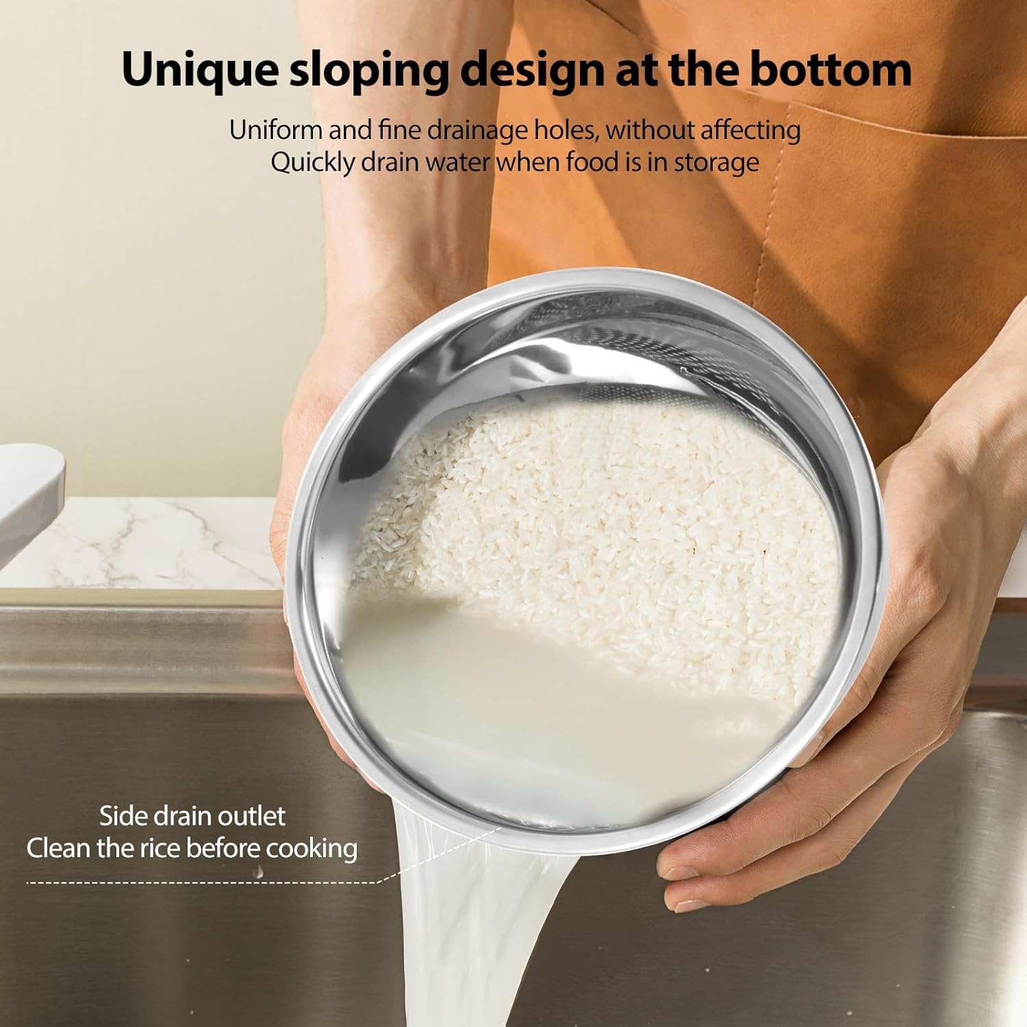 - Stainless Steel Material: Crafted from stainless steel, this rice washer strainer bowl boasts a mirror polished surface to ensure rust resistance and endurance for a long service life