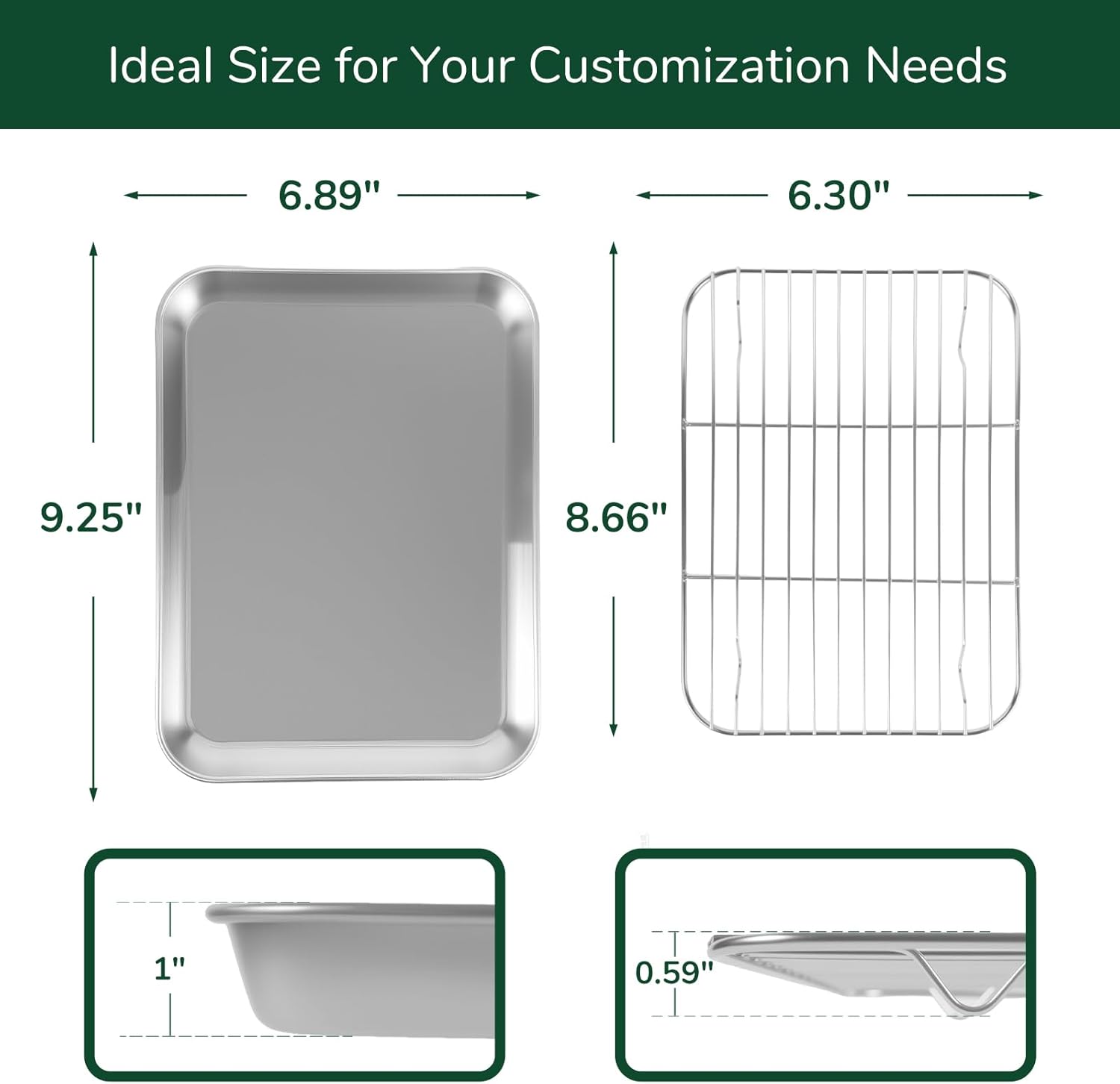 18/0 Stainless Steel Baking Sheet with Cooling Rack, 9.2 Inch Oven-Safe Non-Toxic Cookie Sheets for Baking, Coating Free & Rust Resistant for Healthy Family Baking, Easy to Clean, Heavy Duty