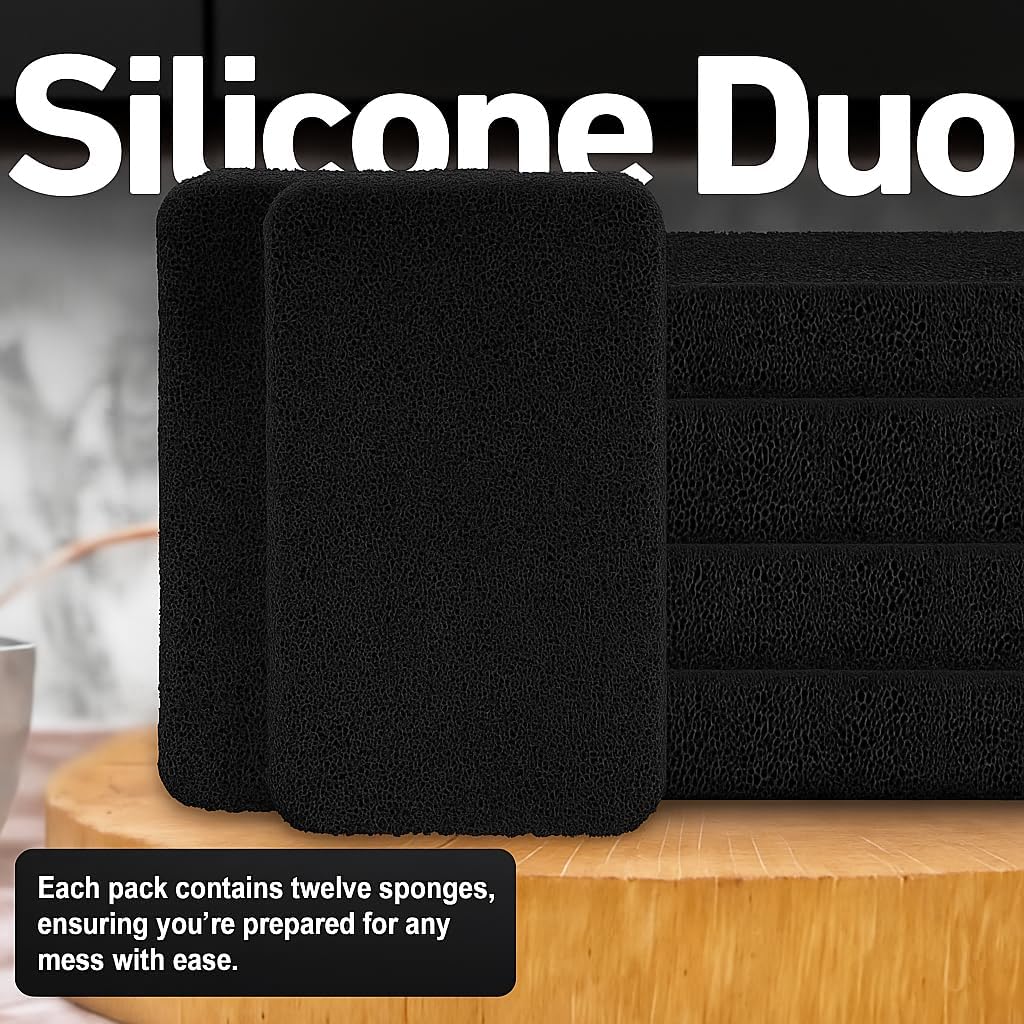 Casanero 12-Pack Silicone Scrubbing Sponges, Heavy-Duty, Non-Scratch | Reusable, Odor-Free, Multi-Purpose Cleaning for Dishes, Non-Stick, Countertops