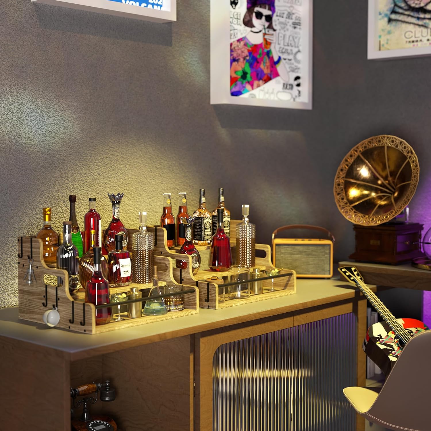 - Multi-Scenario Organizer: From Coffee Bars to Whiskey Cabinets Whether you're building a wine storage rack, setting up a coffee bar shelf for countertop, or upgrading your liquor cabinet bar for home, this versatile unit works as a bottle station, syrup organizer, or even cosmetic display rack