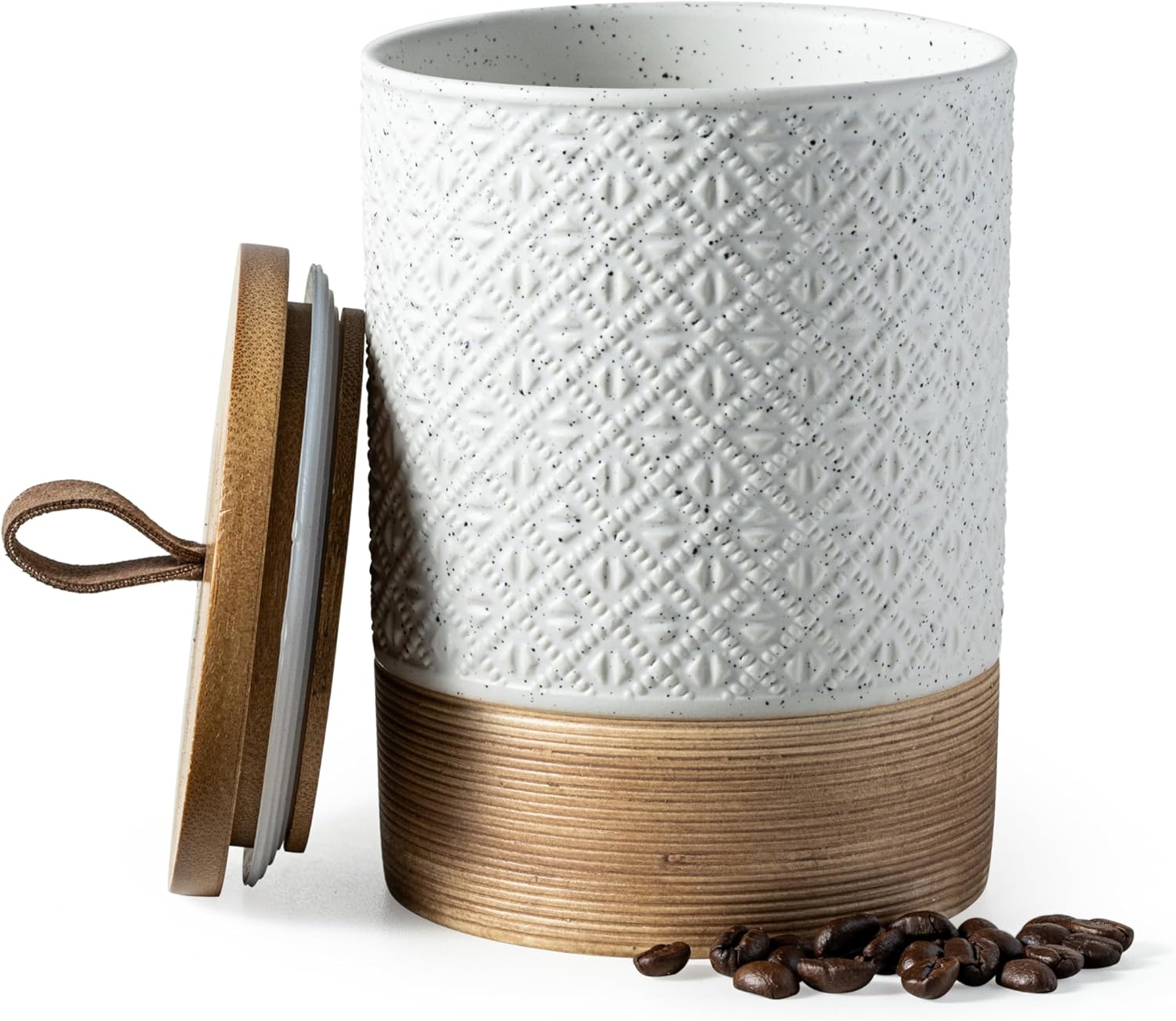 - High-Quality Ceramic Make: This 28oz ceramic coffee canister is crafted from premium ceramic, boasting lovely embossed patterns and easy to clean—dishwasher-safe for lazy cleanup days