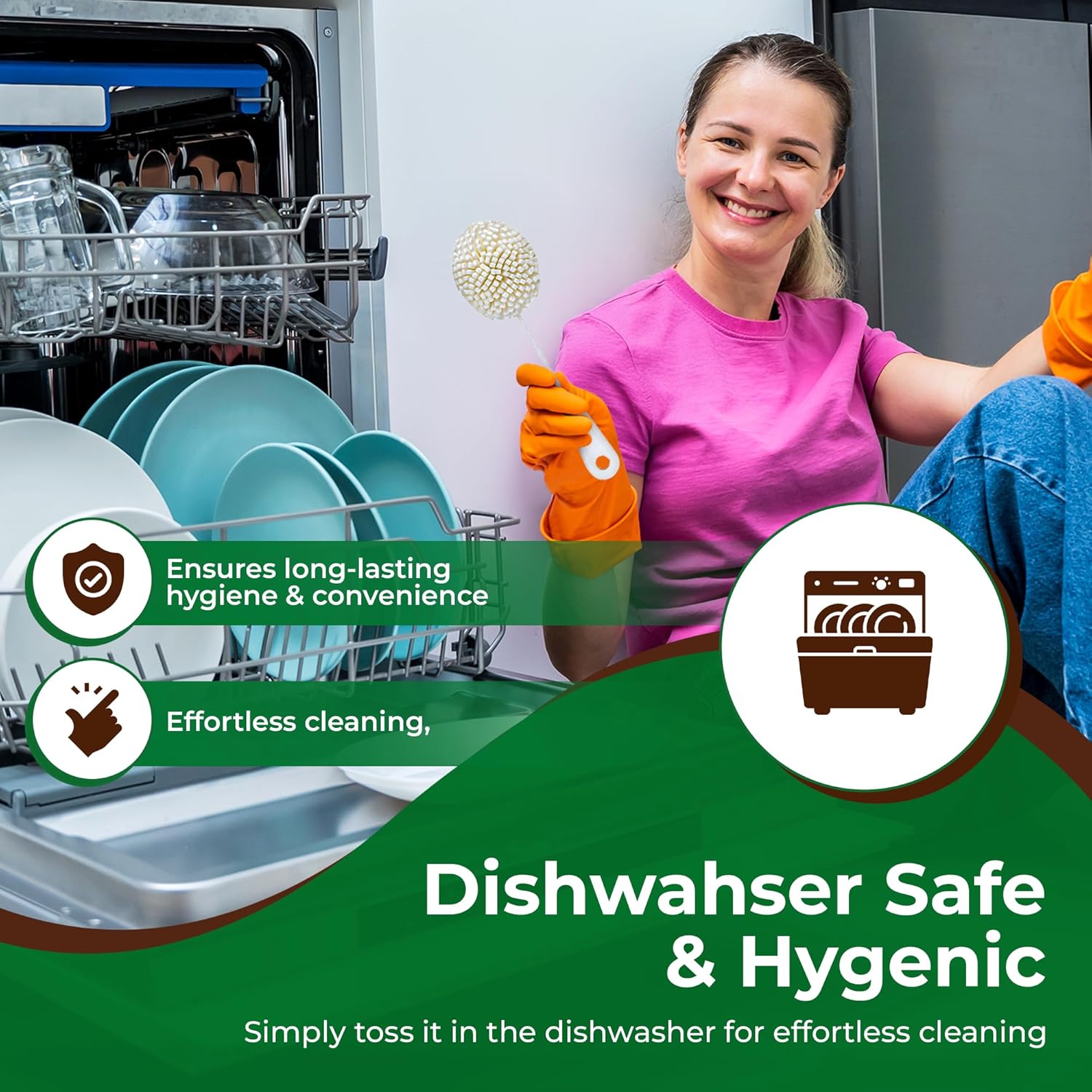 - DISHWASHER SAFE & HYGIENIC - While your delicate glassware is not dishwasher safe, this brush is, simply toss it in the dishwasher for effortless cleaning, ensuring long-lasting hygiene and convenience.