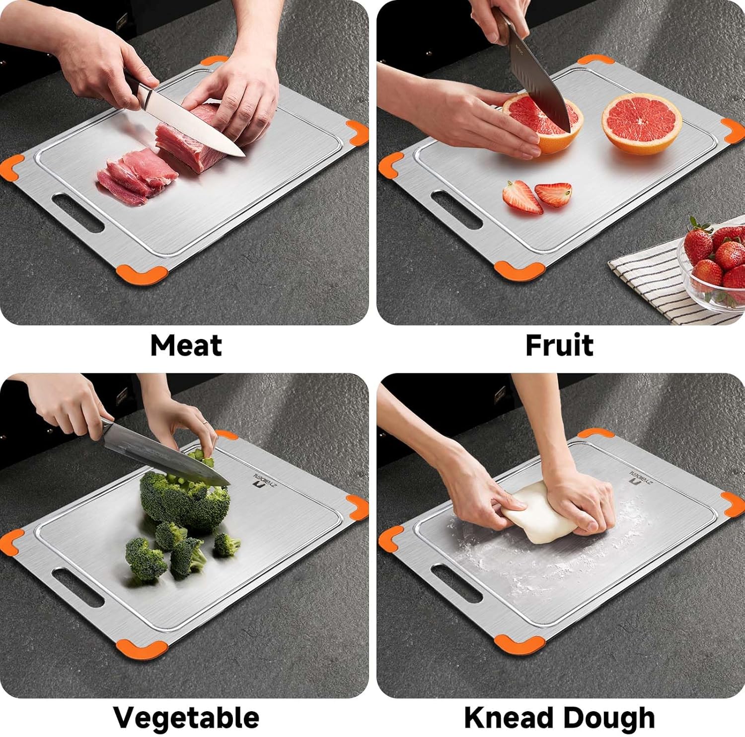 - Upgraded Removable Silicone Non-slip Corner Pad- solves the disadvantage of ordinary titanium chopping boards that are easy to slip with the countertop and not easy to pick up when in use.