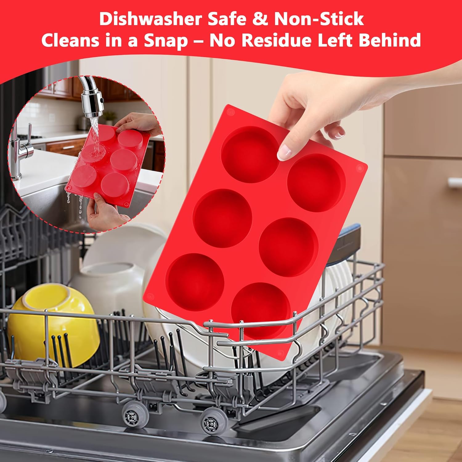 3-Pack Jumbo 6-Cup Silicone Muffin Pan Silicone Muffin Pan - Non-Stick Baking Mold for Cupcakes, Cornbread, Eggs - Red