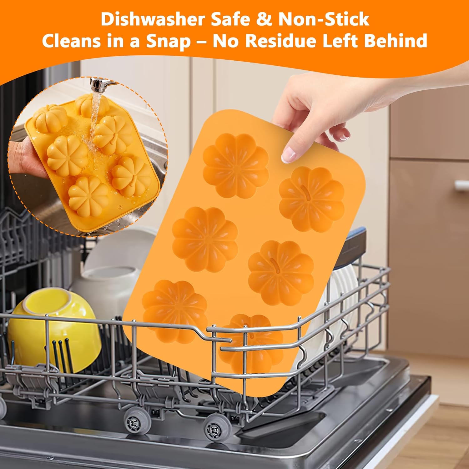 3-Pack 6-Cup Silicone Muffin Pans, Nonstick Cupcake Baking Molds, BPA/PFA-Free, Dishwasher & Oven Safe Pumpkin