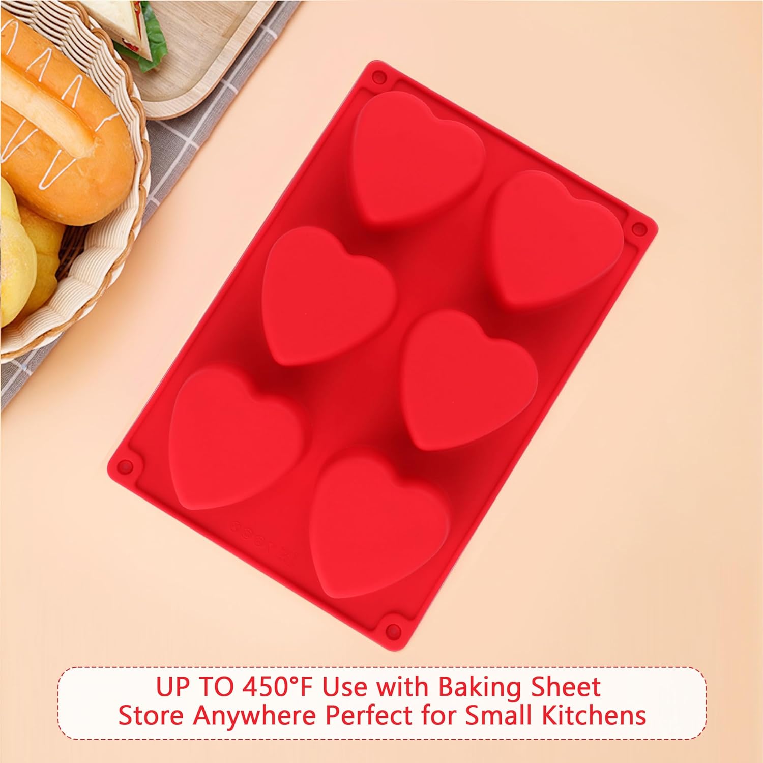 3-Pack 6-Cup Silicone Muffin Pans, Nonstick Cupcake Baking Molds, BPA/PFA-Free, Dishwasher & Oven Safe Heart-shaped Red