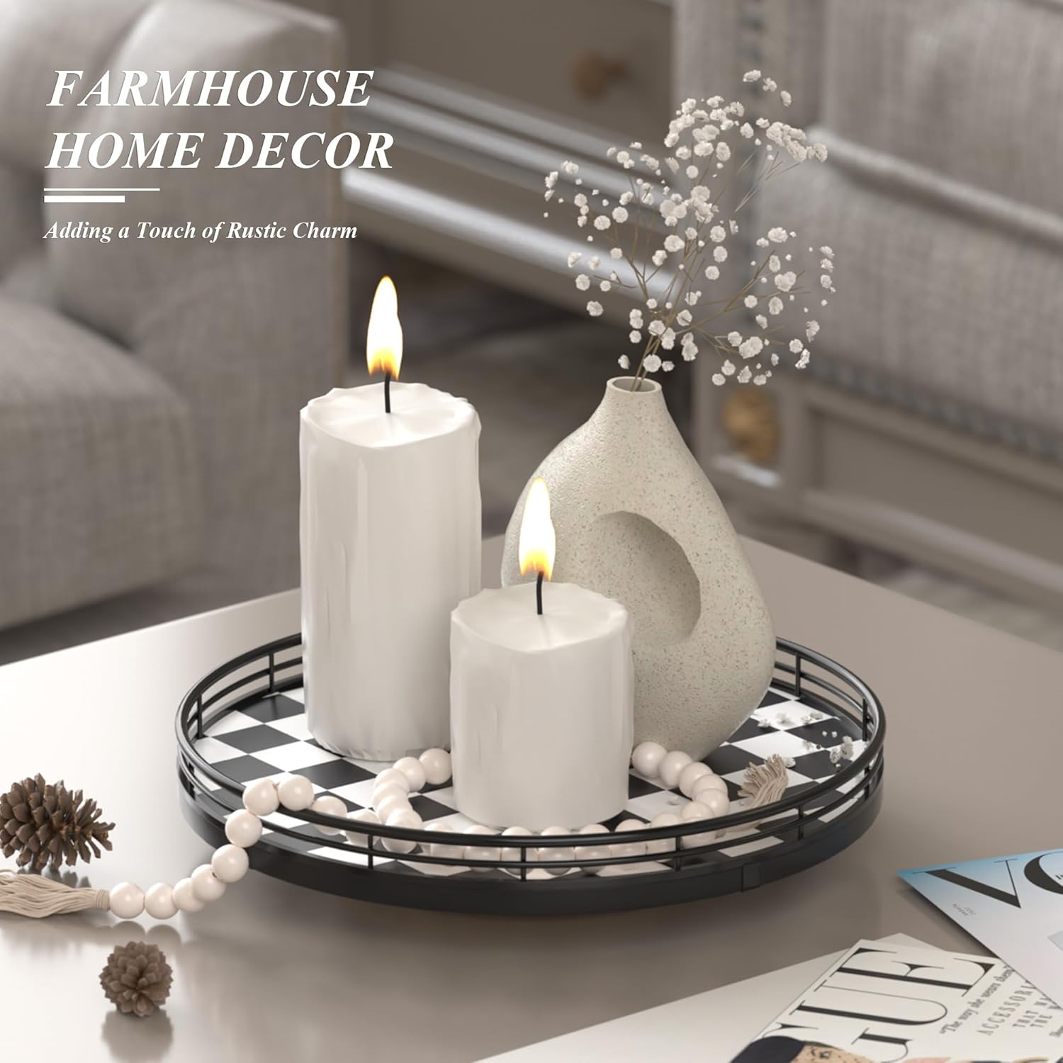 - QUALITY CRAFTSMANSHIP & STYLE – Built with a durable checkered oakwood base and iron frame. From a black check serving tray to a cute lazy susan for table top, it blends seamlessly with modern pottery barn decor styles.