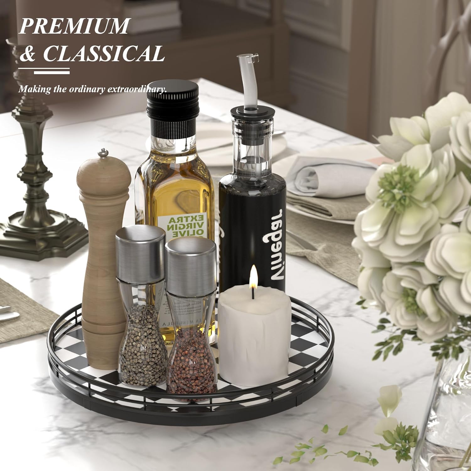 - COMPACT & DECORATIVE – Perfect as a mini decorative lazy susan, a small kitchen table centerpiece, or a table kitchen caddy, bringing both function and charm to your tabletop.