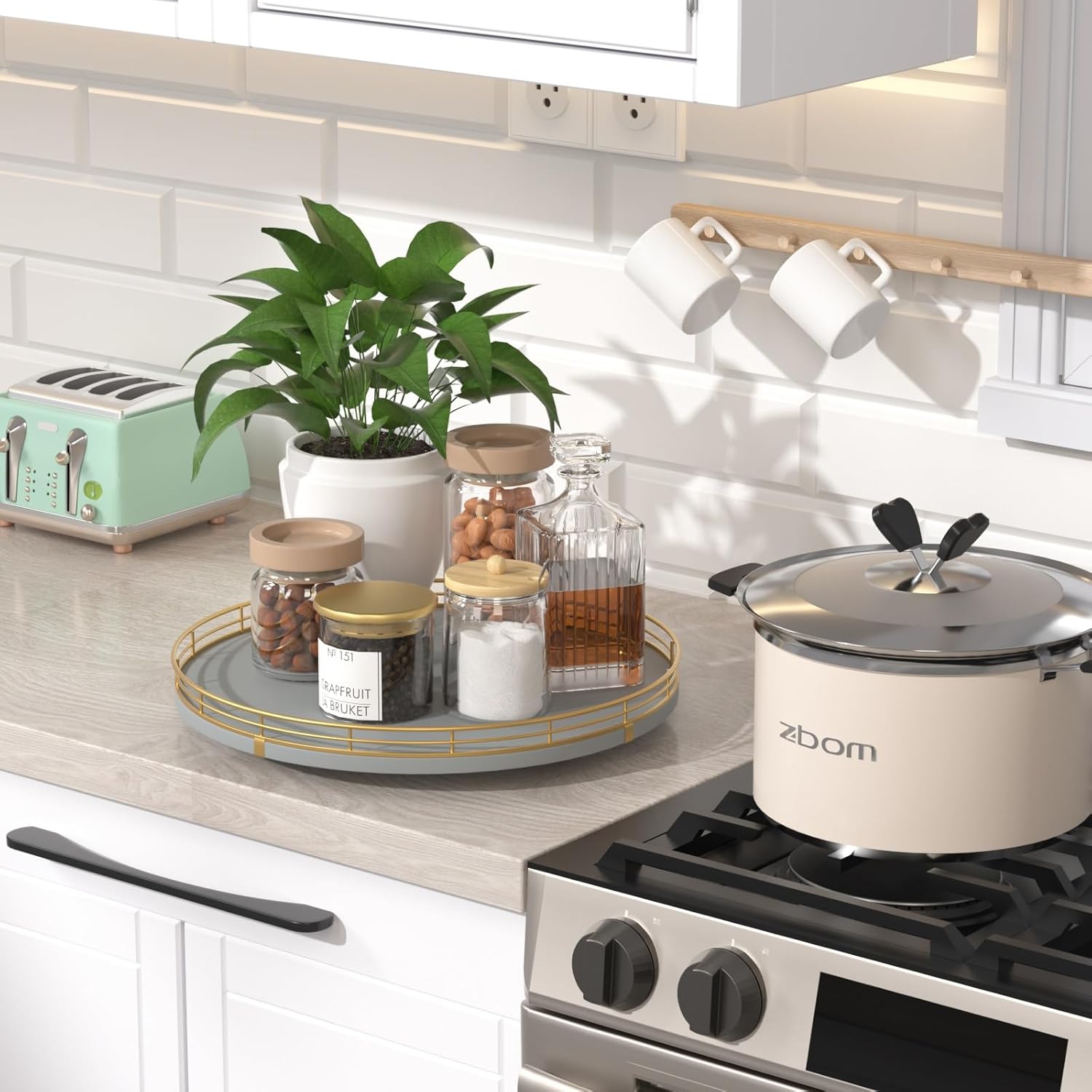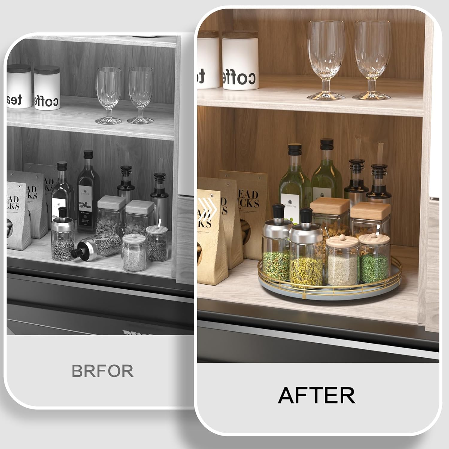 - 【Versatile Home Organizer】More than just a kitchen counter organizer, this lazy susan can also be used for coffee stations, bathroom essentials, or as a rotating tray for skincare and cosmetics. A true lazy susan organizer for cabinet, countertop, and beyond.