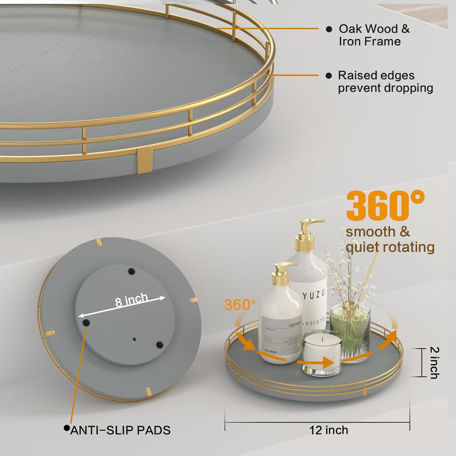 - 【Delicate Gift for Your】 Oroyutor lazy susan for dining table is elegantly packaged in luxurious color boxes, making a stylish and practical gift choice for birthdays, housewarmings, weddings or any special occasion; Delight your friends and loved ones with its combination of elegance, functionality and enduring charm