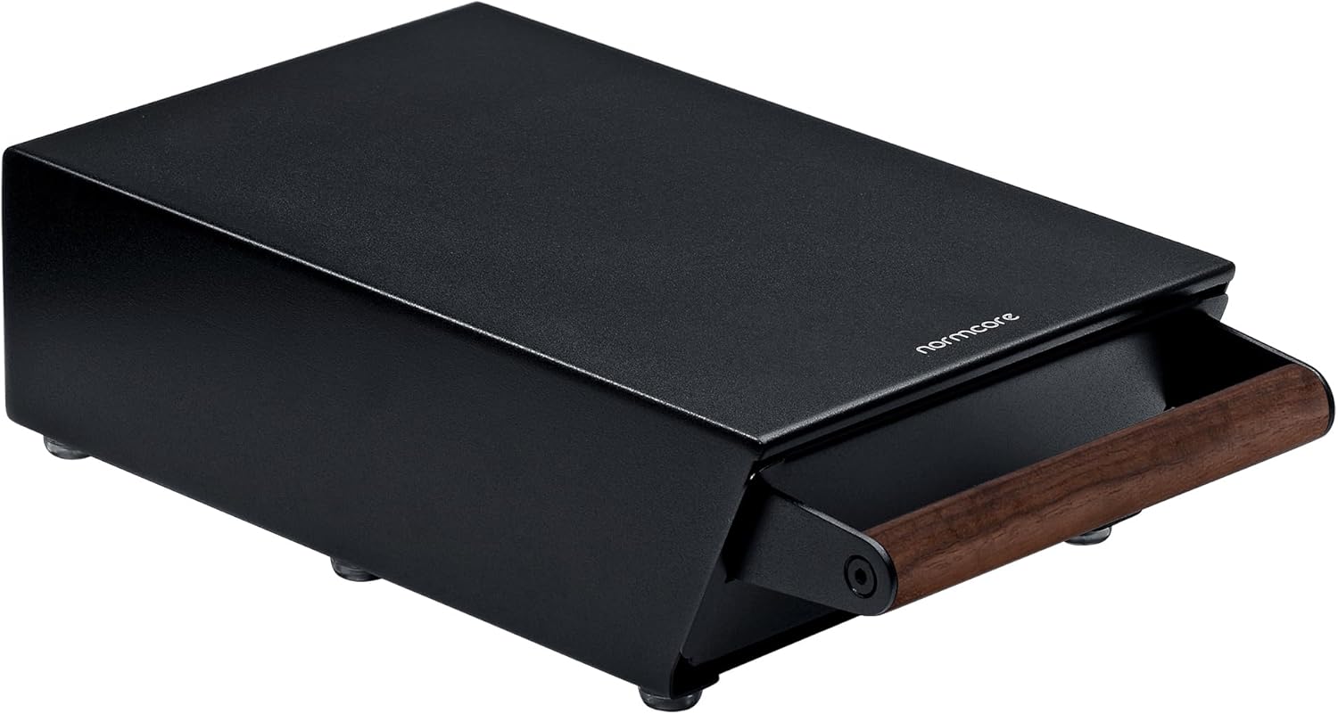 Normcore Espresso Knock Box, Under Grinder Knock-out Drawer with Walnut Wood Hand, Shock Absorbing Removable Knock Bar and Non-Slip Base, 304 Stainless Steel, Size: M
