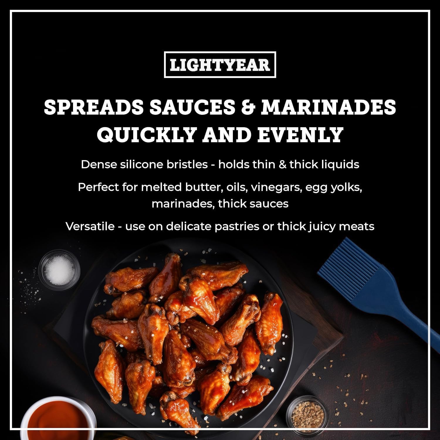 Lightyear Silicone Basting Pastry Brush Set (2 Pcs) ❘ 450°F Heat Resistant Oil Brush for Your Kitchen - Ideal For BBQ’s, Baking & Cooking | 100% Food Grade Silicone - BPA Free & Dishwasher Safe (Blue)