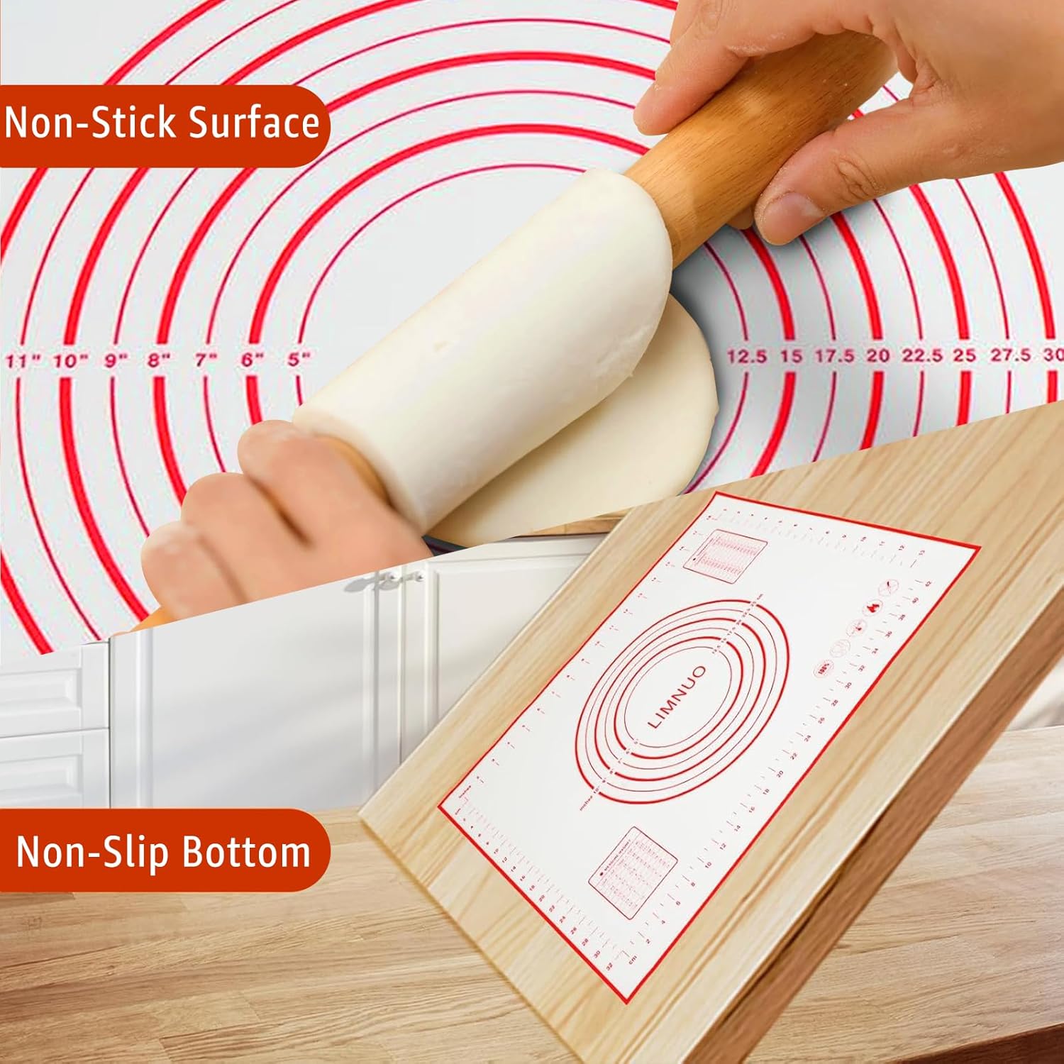 - Non-sticky and Anti-slip Pastry Mat:The non-stick working surface don't need flour to prevent sticking, the dough will slide, turn and roll easily! Even if grease or dough sticks to the surface, baking mat can be easily cleaned up. This non-slip silicone dough mat sheet can realize complete adhesion, strongly adhesive to the countertop, won't slip and slide around, which allows you to roll, cut, or crush comfortably the dough. Enjoy your cooking time!